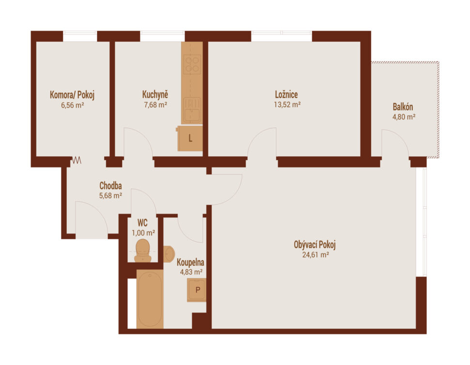 Prodej bytu 2+1 (3+1), 68 m²,