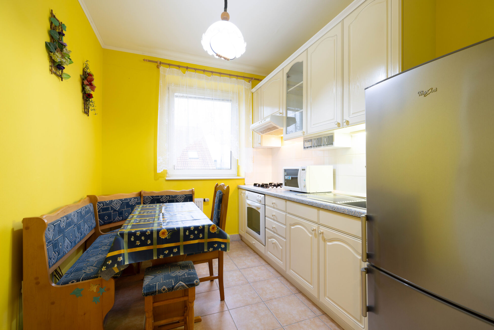Byt se nachází v 4. podlaží bezbariérového bytového domu s výtahem. Skládá se z krátké chodby, ze které je přístup do kuchyně s jídelním stolem, koupelny s vanou a vlastním plynovým kotlem, na oddělenou toaletu, dále do obývacího pokoje s balkonem, z obýváku je následně možné projít do ložnice. Poslední místností bytu je komora o velikosti 6,56 m2, která má však radiátor i okno a mnoho bytů se stejnou dispozicí ji využívají jako třetí pokoj. Stejně tomu je i v tomto bytě. Byt bude novému majiteli předán s vybavením na fotografiích, tedy zařízený.
