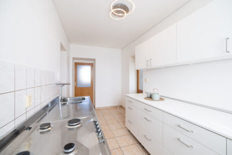 Praktickým bonusem je dostatek úložných prostor v podobě vestavěné skříně na chodbě a nadstandardních sklepů o výměře 22 m2.