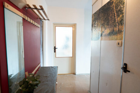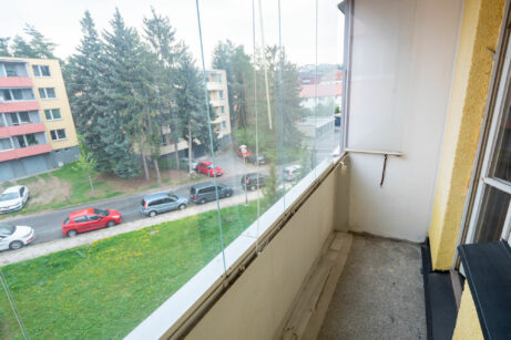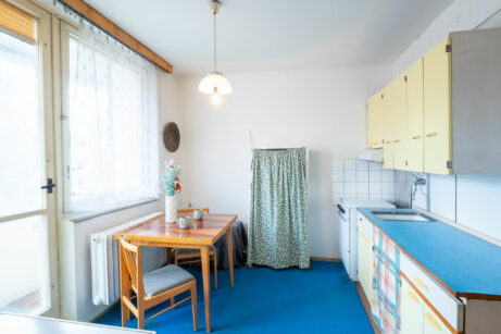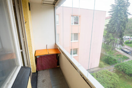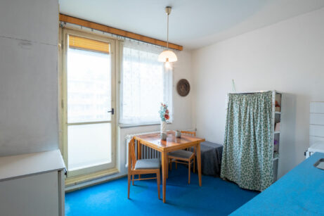 Byt se nachází ve 4. NP panelového domu. Obývací pokoj s kuchyní jsou orientovány na východ, ložnice poté na sever do klidného vnitrobloku. Byt je v původní, ale udržovaném stavu. Umakartové jádro doplňuje původní kuchyně s plynovým sporákem. Vytápění i ohřev vody jsou centrální. Okno v ložnici je zánovní plastové, kuchyně a obývací pokoj mají původní dřevěné výplně.