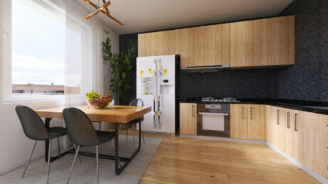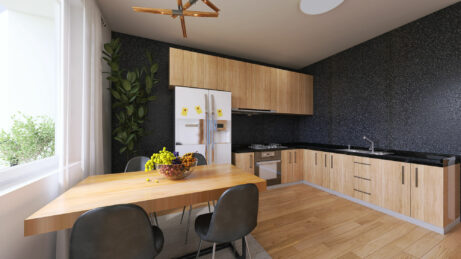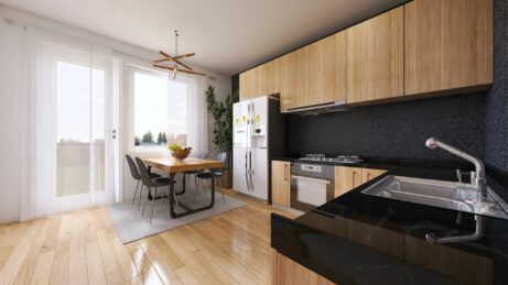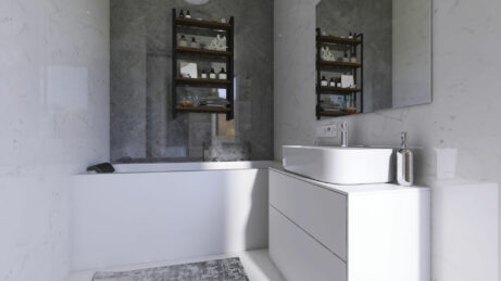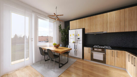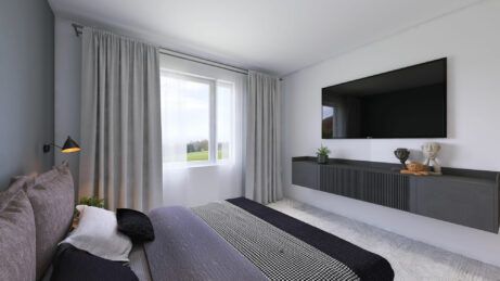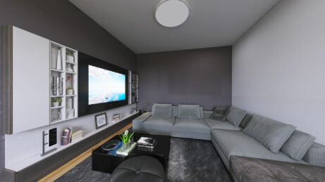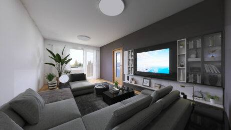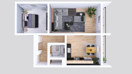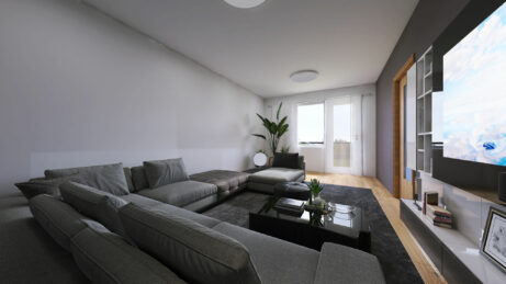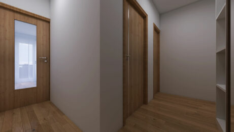 Na vizualizacích je vidět možná rekonstrukce bytu a využití místností. Jsou zpracovány dle reálných rozměrů prostor.