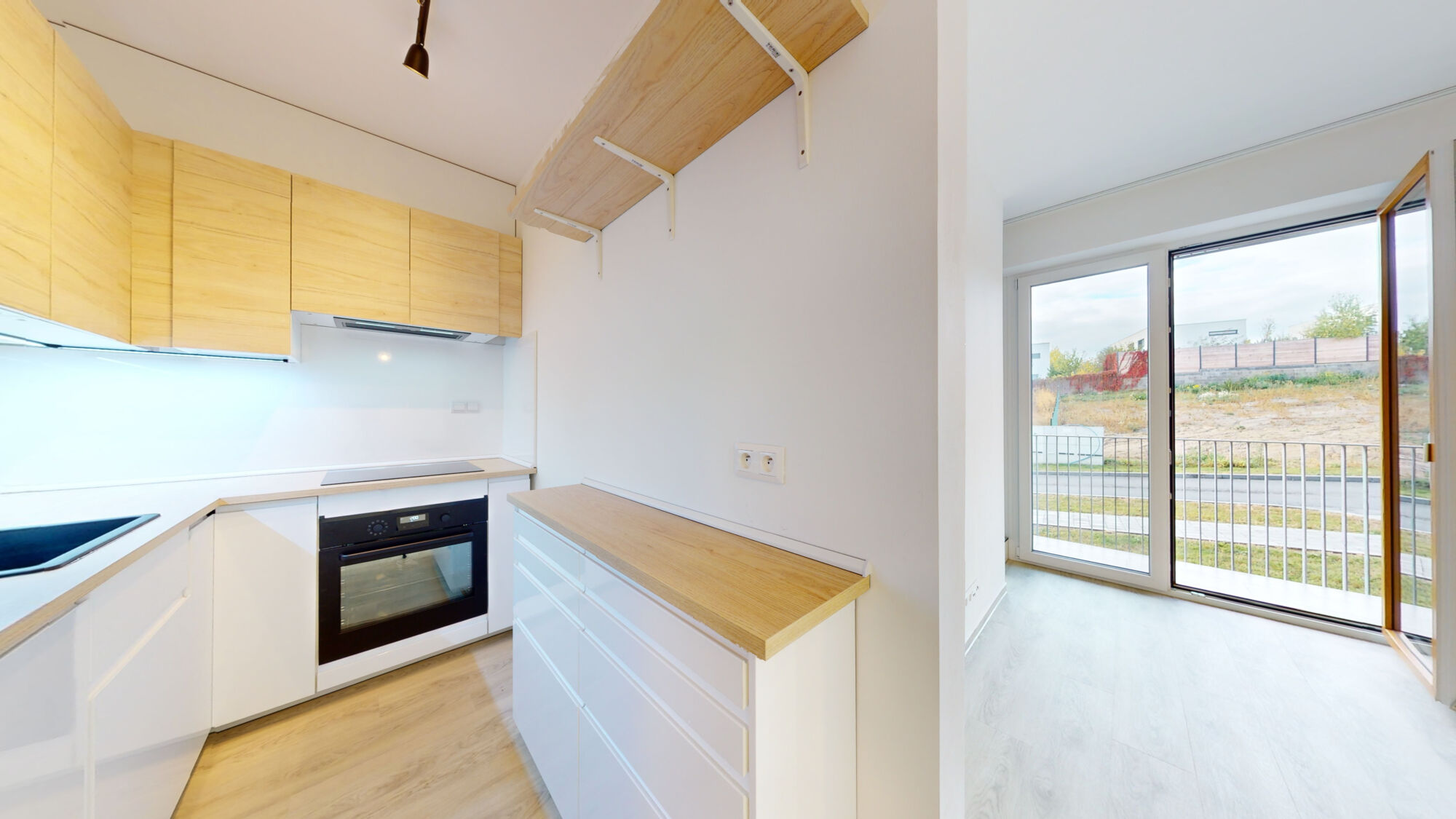 Byt 1+kk je vhodný pro pár i jednotlivce, moderní vybavení, včetně spotřebičů