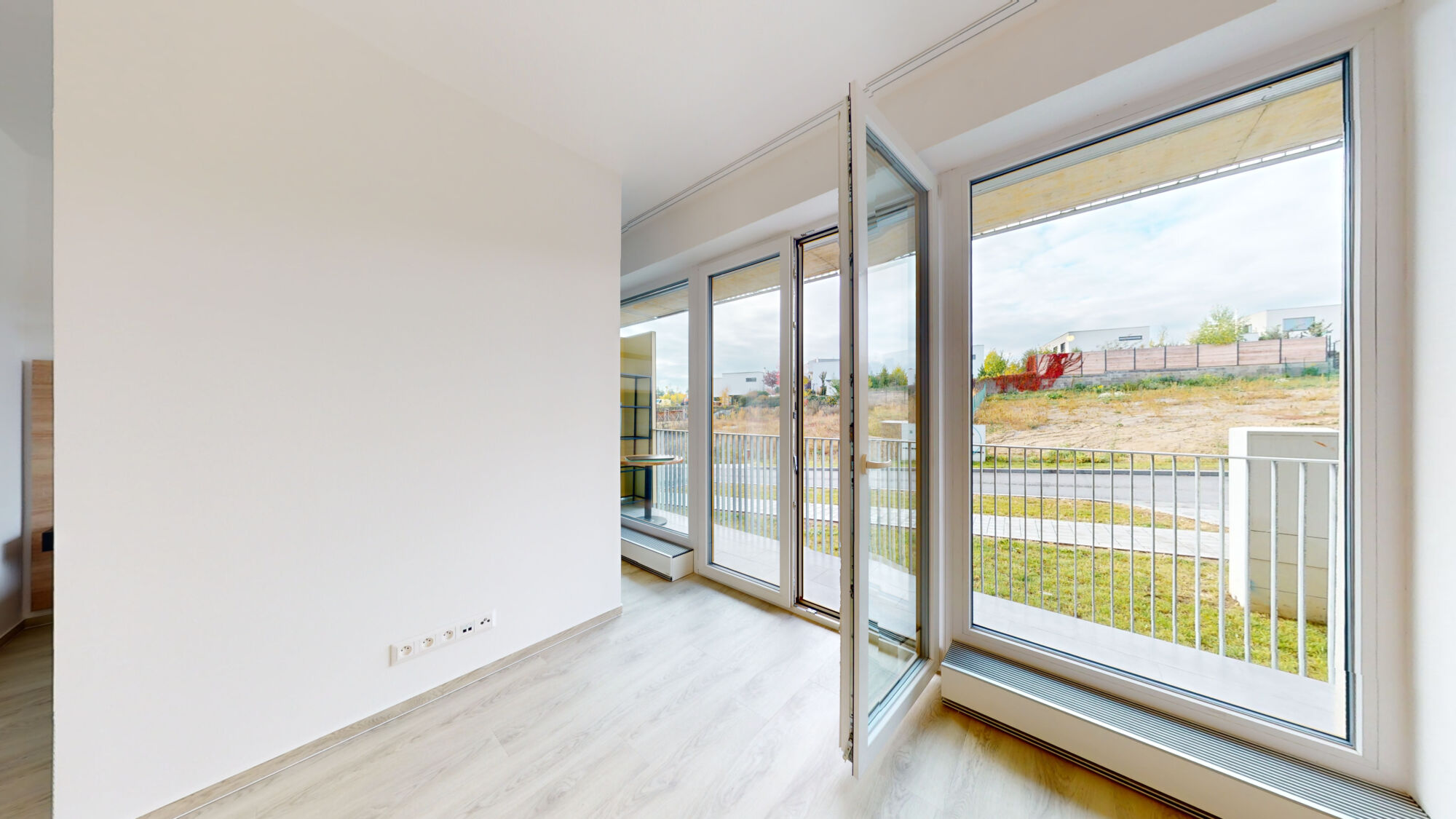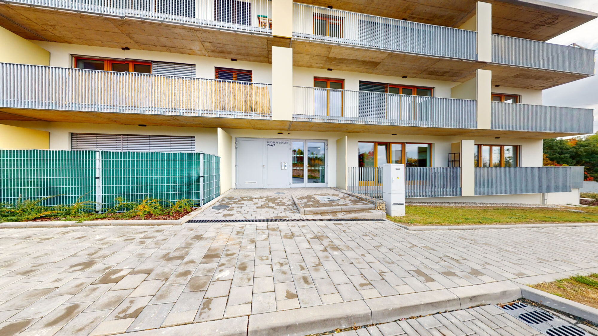 Byt je umístěn v prvním podlaží bytového domu s bezbariérovým přístupem jak z chodníku, tak ze suterénních garáží. Jeho celková plocha činí 42 m2 + balkon a skladovací kóje.
