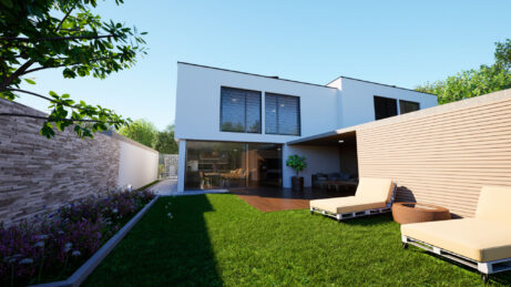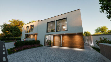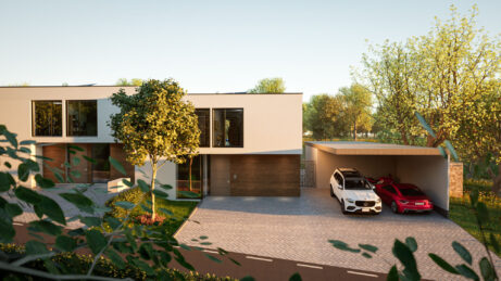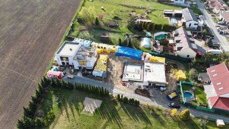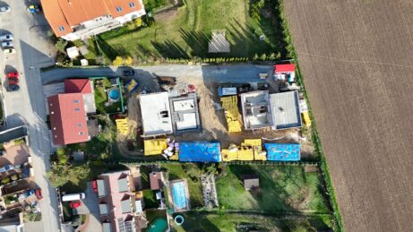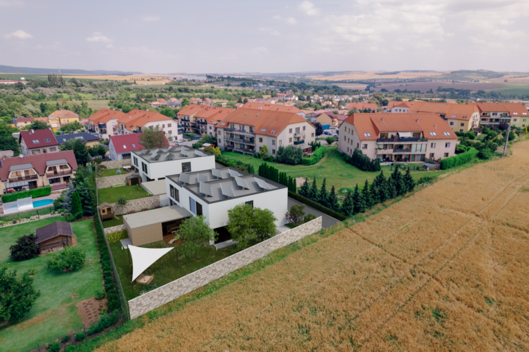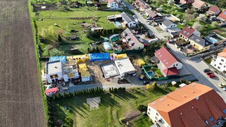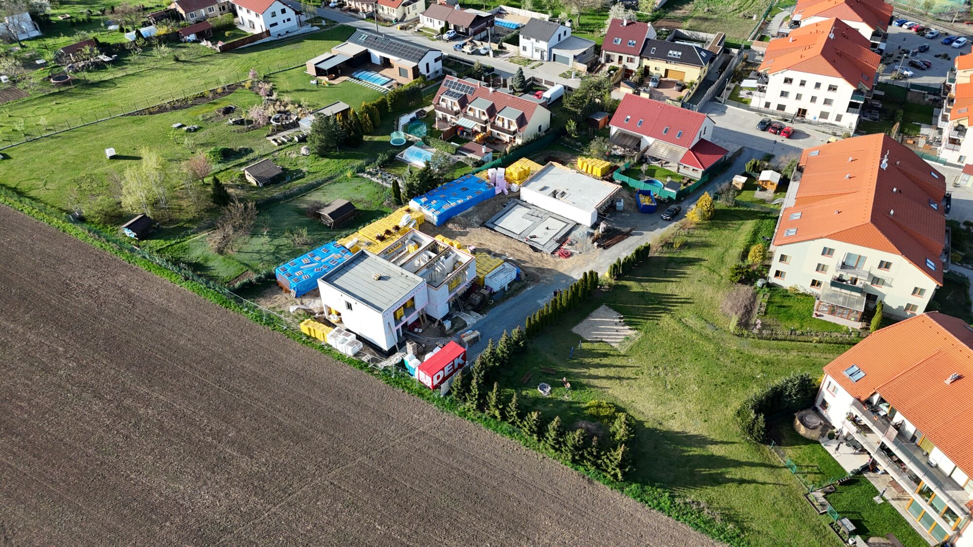 Nová rezidenční výstavba, nová příjezdová komunikace, 4 novostavby nadstandardních rodinných domů citlivě zasazené do aktuální zástavby, přitom s důrazem na soukromí, i na terase a zahradě.
