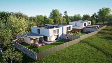Realitní společnost IP Solution Real nabízí prodej novostaveb čtyř rodinných vilek o dispozici 6+kk.