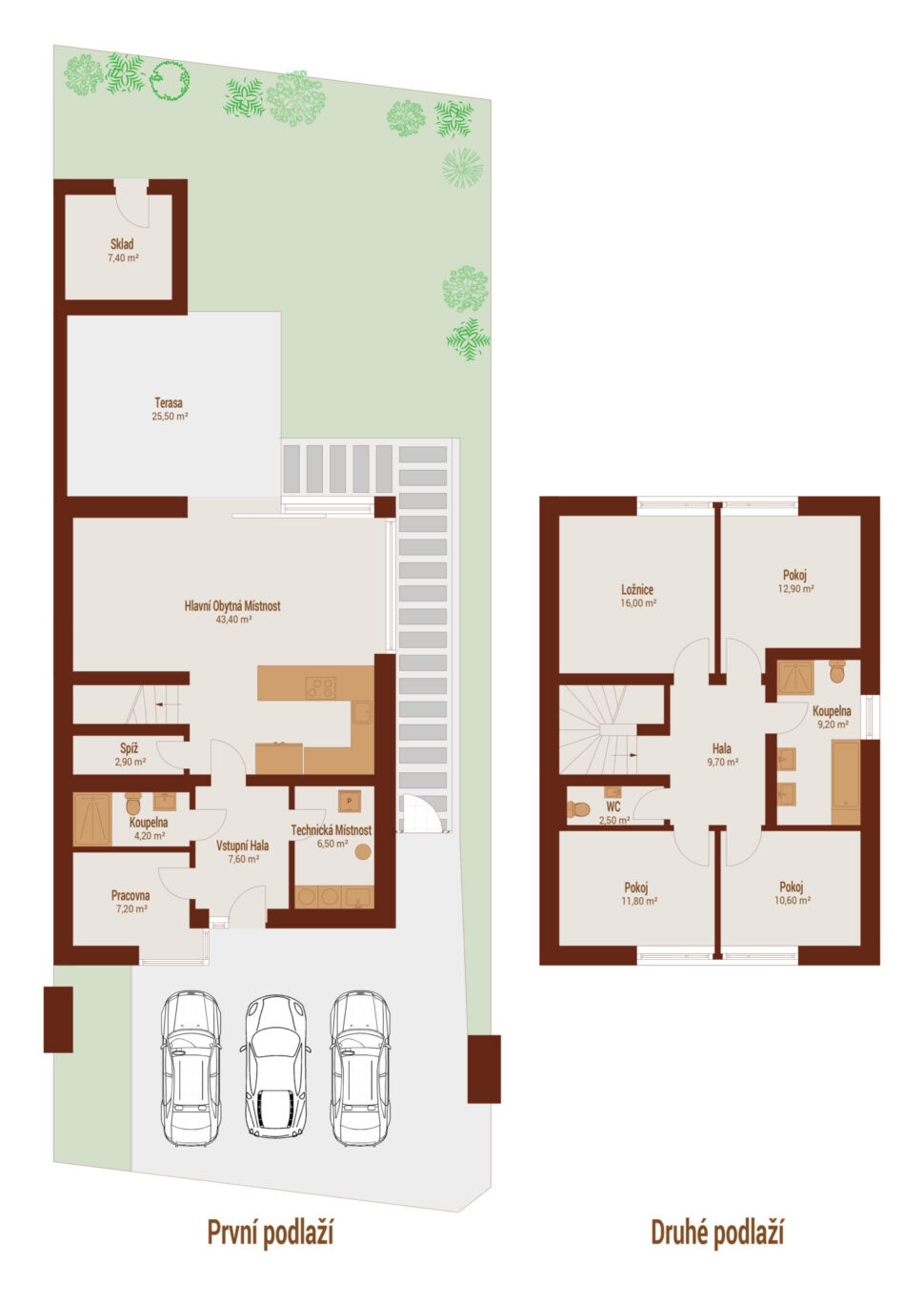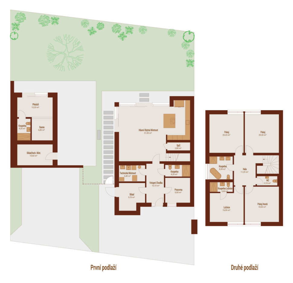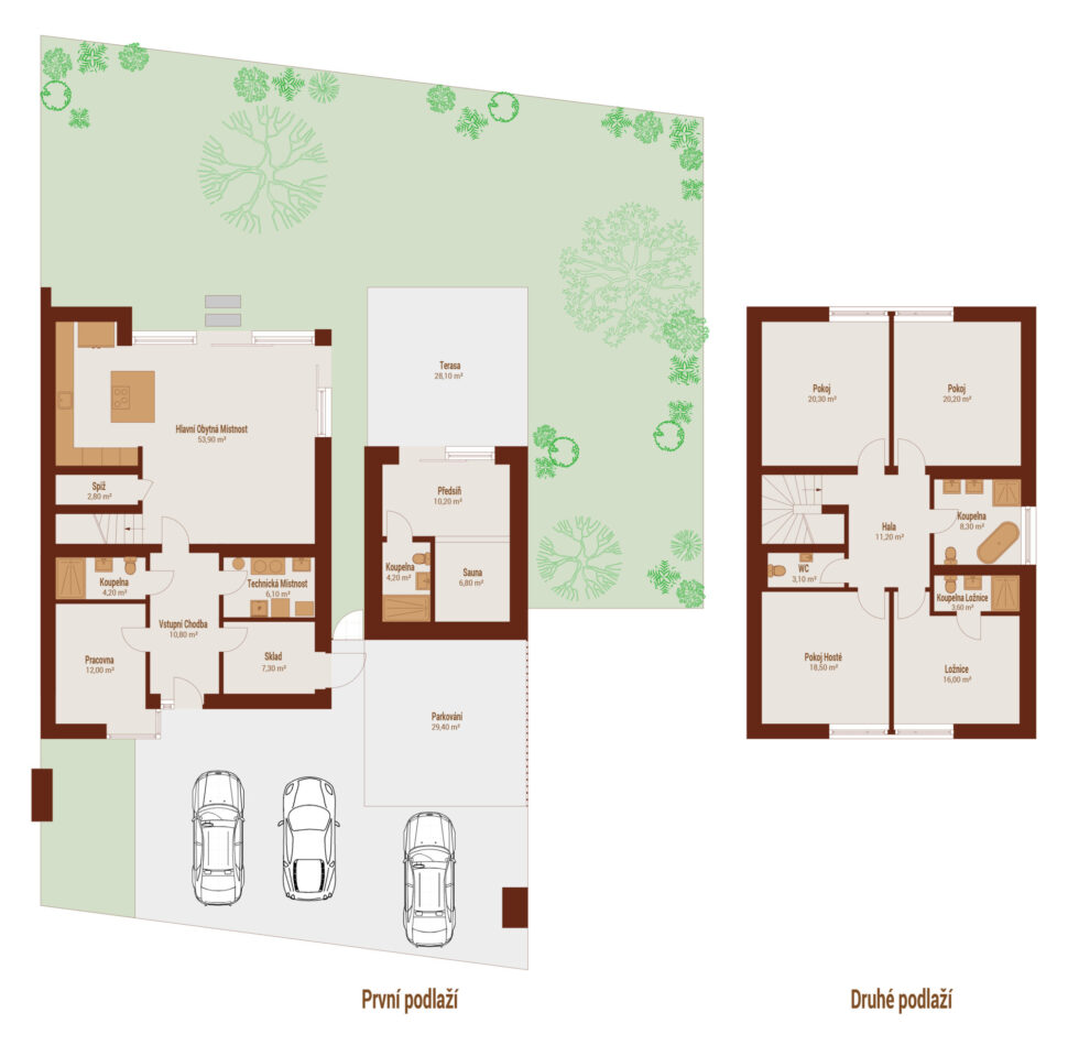 V ceně je již obsažen vyšší standard všech povrchů (bez kuchyňské linky), vše je však možné přizpůsobit. Na míru vám poté předáme kompletně dokončený dům.