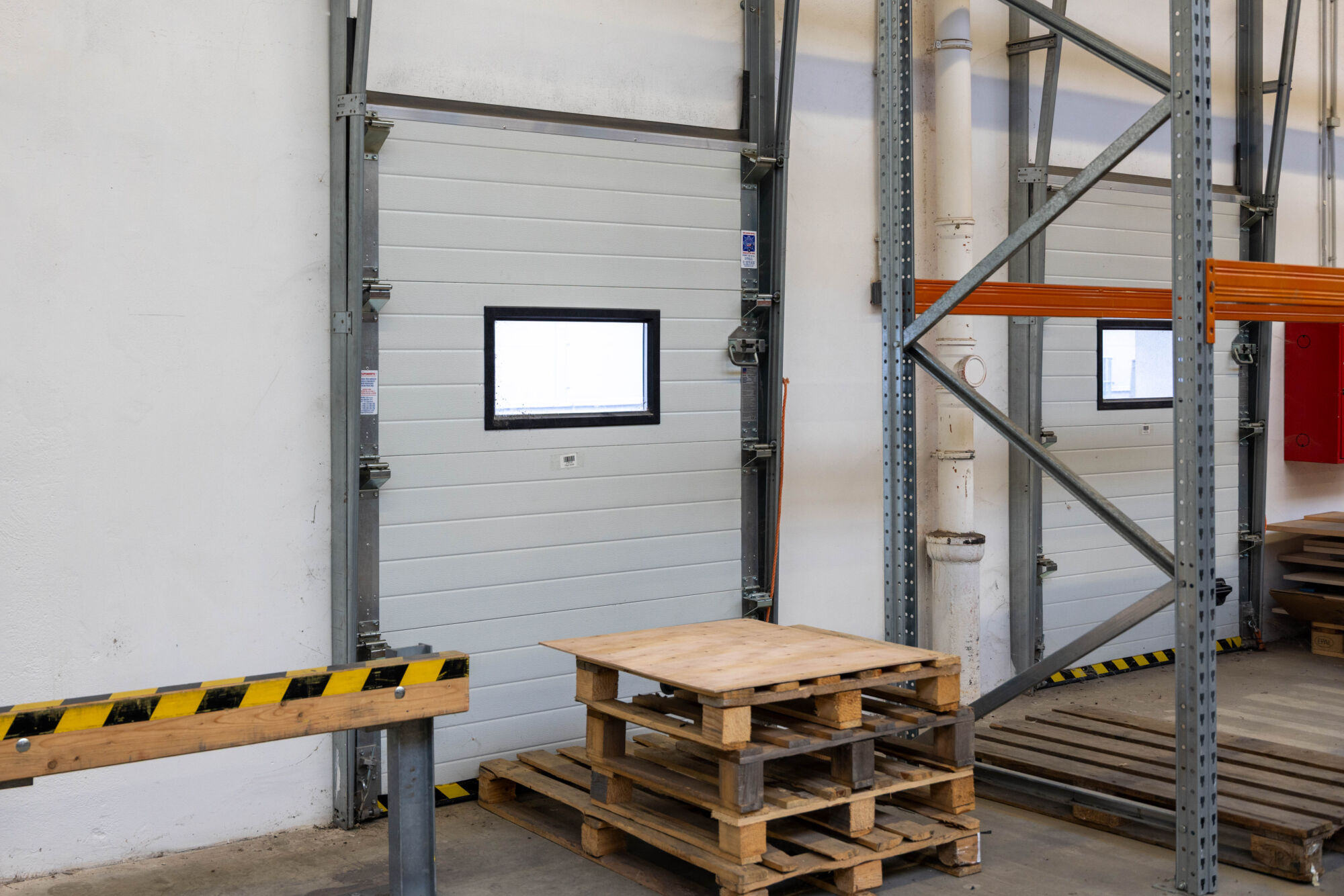 ___Kompletní nakládací zázemí: Rampa se dvěma vraty pro kamiony doplněná o další vjezdová vrata pro menší vozy.
